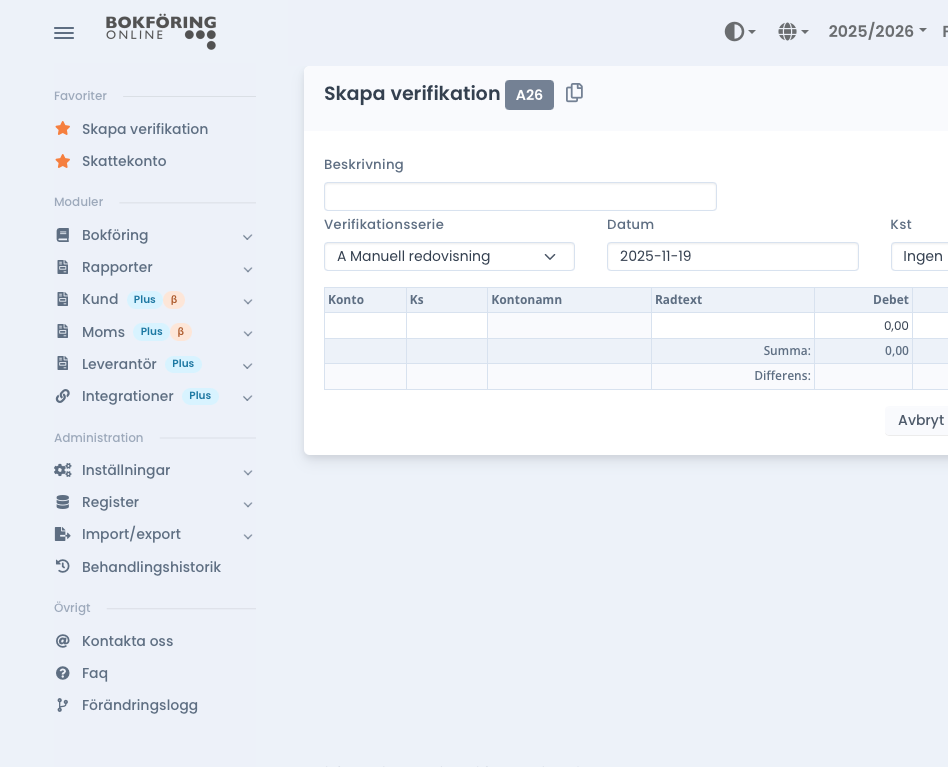 Du kan närsom under året byta från ditt existerande bokföringsprogram och ta med dig alla verifikat, datum, verifikationsserier, egna konton, kostnadsställen och värden med vår importfunktion (import av SIE4-fil). Prova kostnadsfritt!
